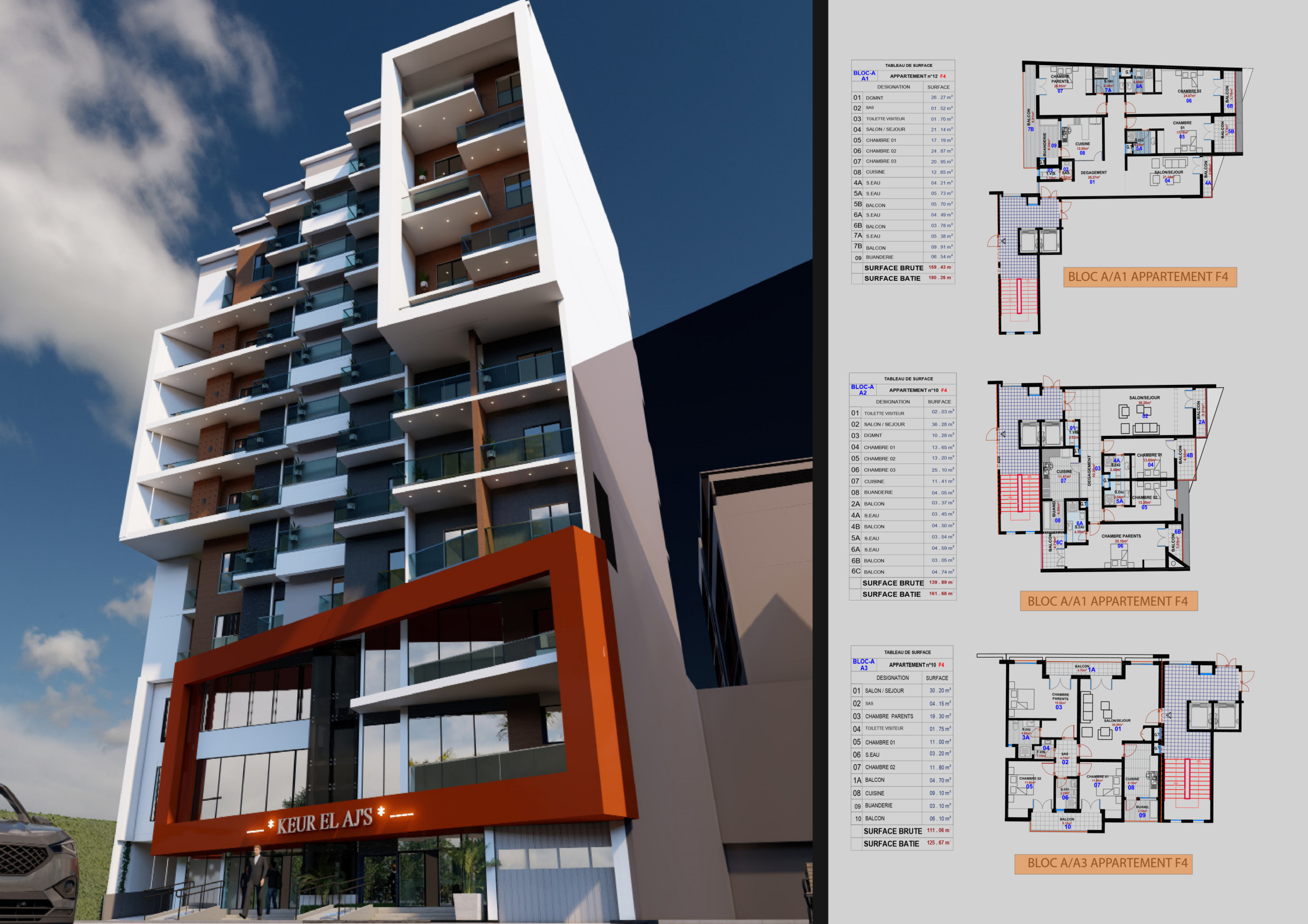 Ce prestigieux programme immobilier à Ouakam, près de la corniche, se compose de quatre immeubles résolument contemporains. Chaque bâtiment offre des résidences spacieuses et élégantes, disponibles en configurations F3 , F4 et F5.